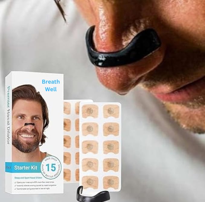 BreathWell Nasal Strips are adhesive strips that gently lift your nasal passages to help improve airflow and make breathing easier, especially during sleep or exercise.
